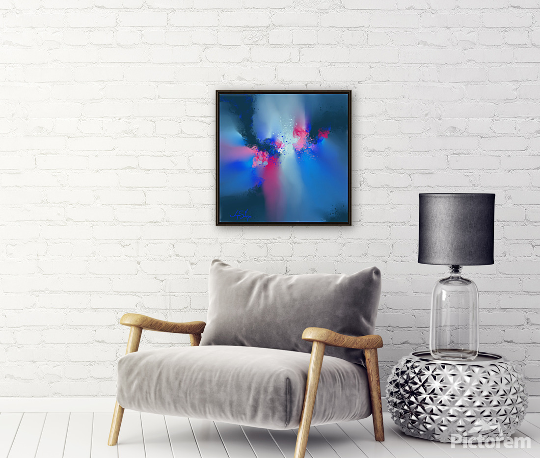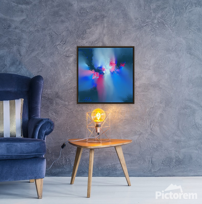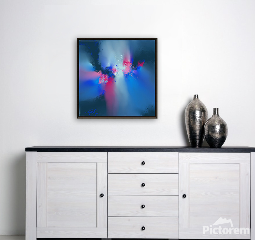 Vibrant splashes of blue and pink converge at the center, creating a captivating cosmic explosion effect. Light and dark shades blend seamlessly, adding depth and intrigue to the composition.
